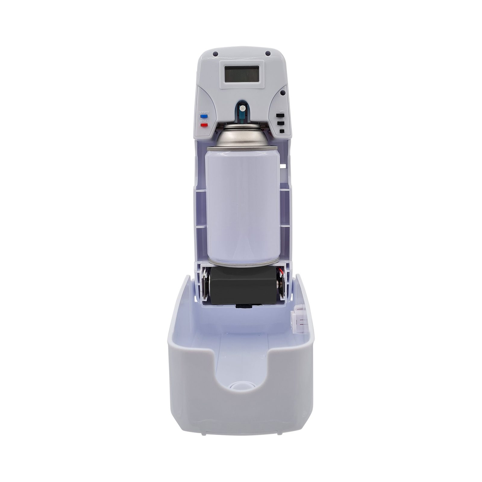 - Modern and elegant digital aerosol air freshener dispenser made from stain and chemical-resistant PP (polypropylene) plastic in white color.