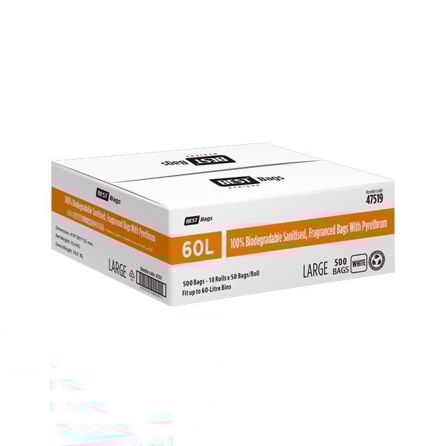 Best Hygiene 60 L White Biodegradable Fragranced Sanitary Bags, Large, 500 Bags