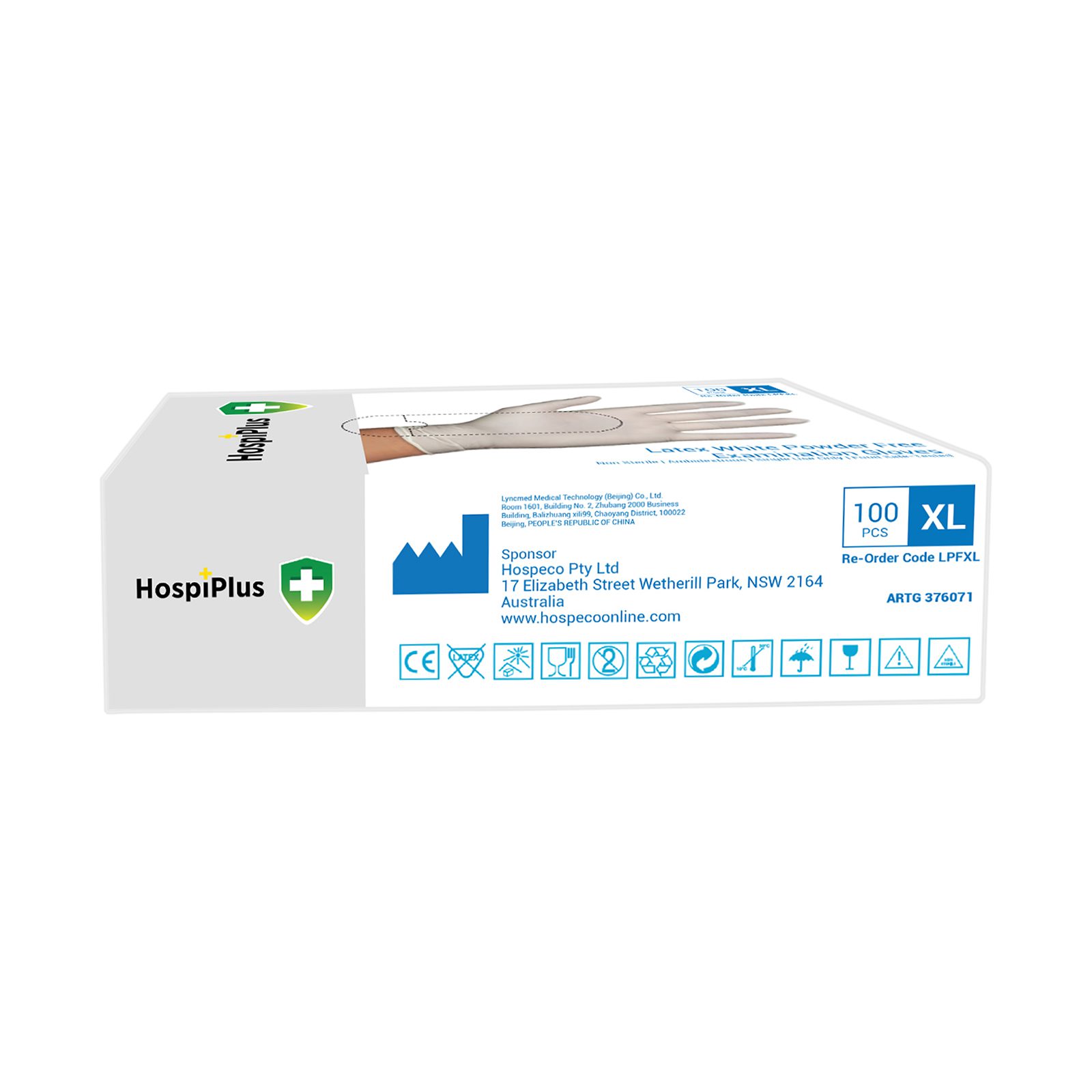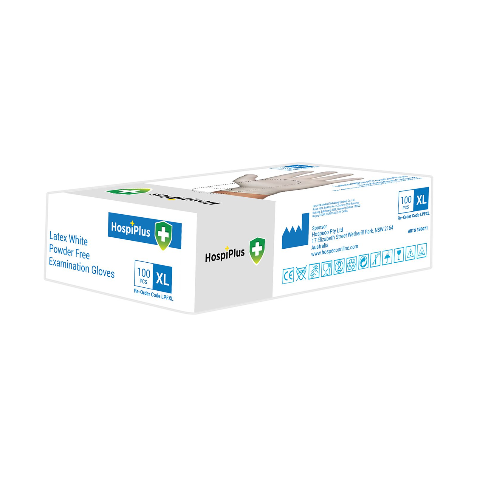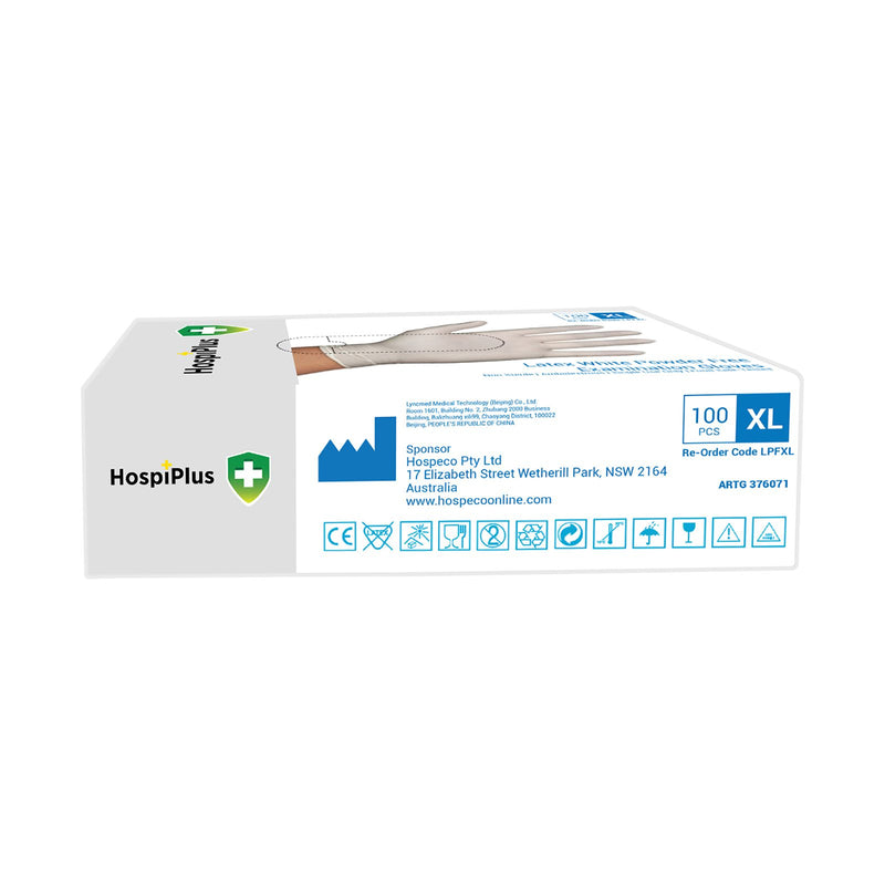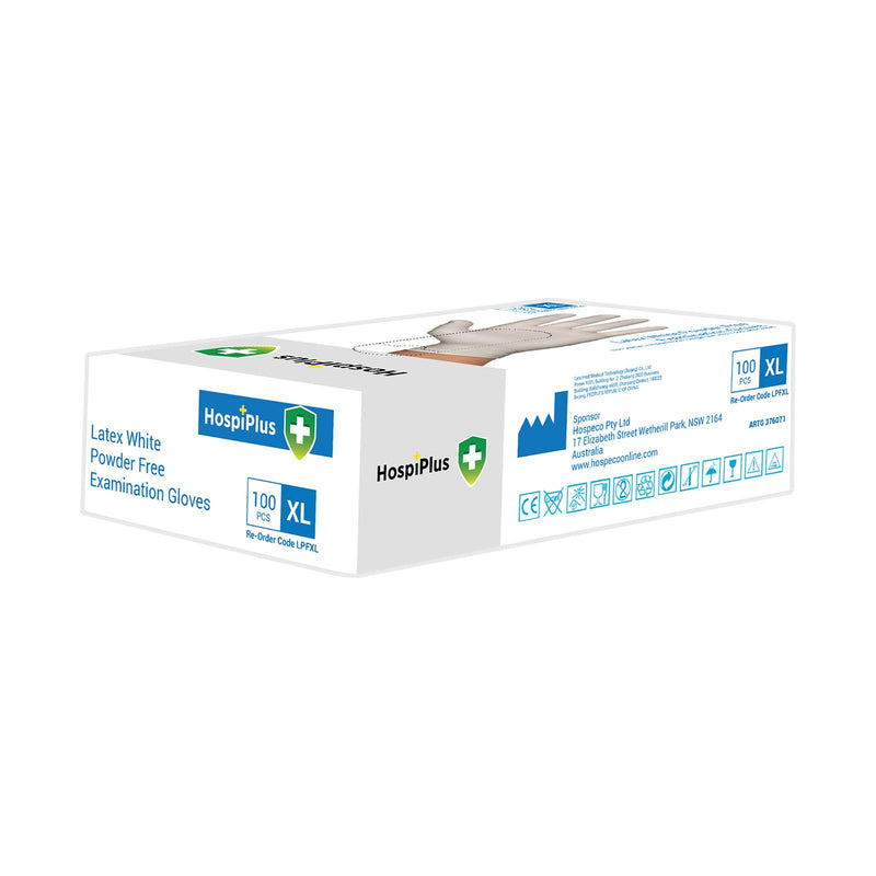 HospiPlus Latex Powder-Free Gloves, White, Extra Large, 100 pcs