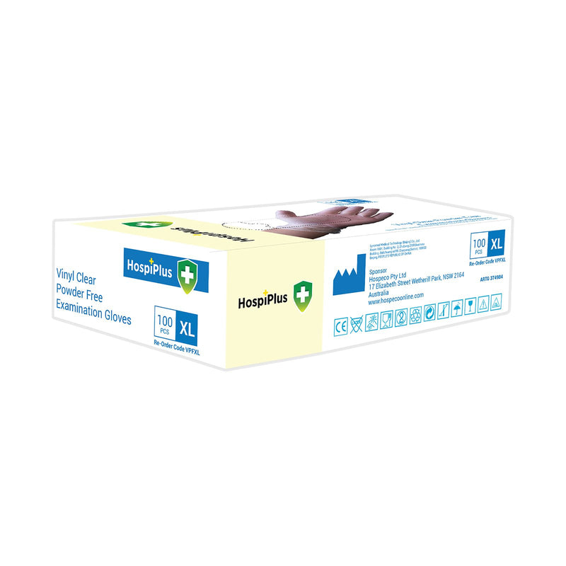 HospiPlus Vinyl Powder-Free Gloves, Clear, Large, 100 pcs