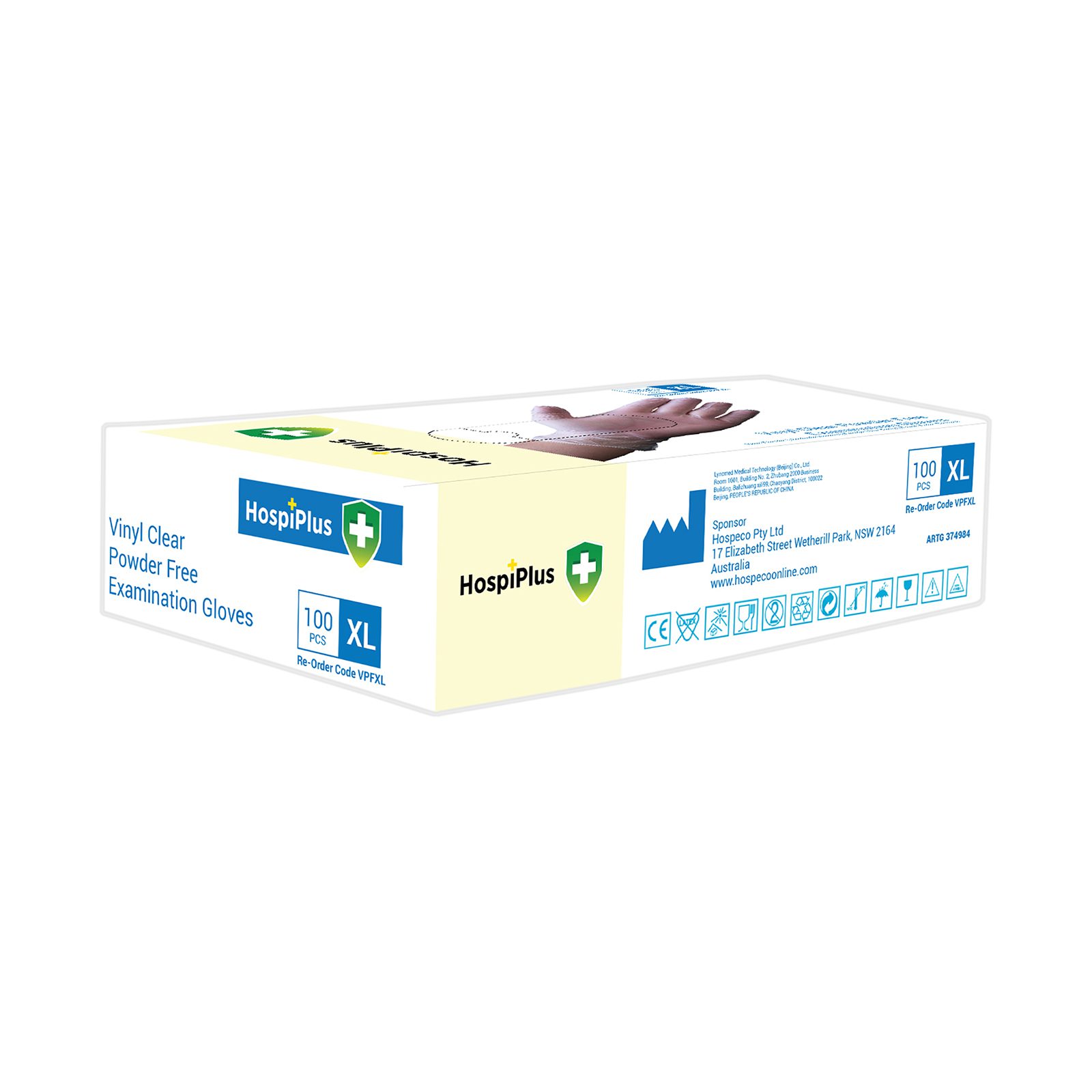 HospiPlus Vinyl Powder-Free Gloves, Clear, Medium, 100 pcs