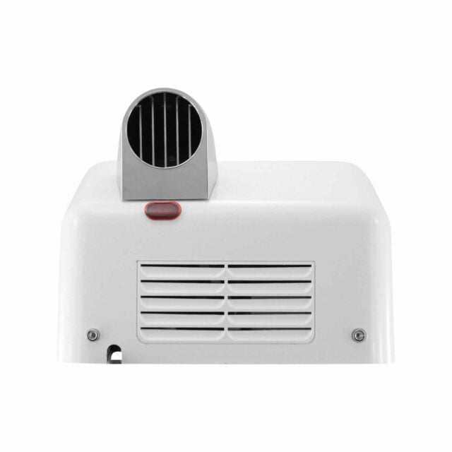 White Coated ABS TradeMAX is a multipurpose versatile hand dryer can be used for hand, face or hair with its 360 degrees rotating chrome finish air nozzle.